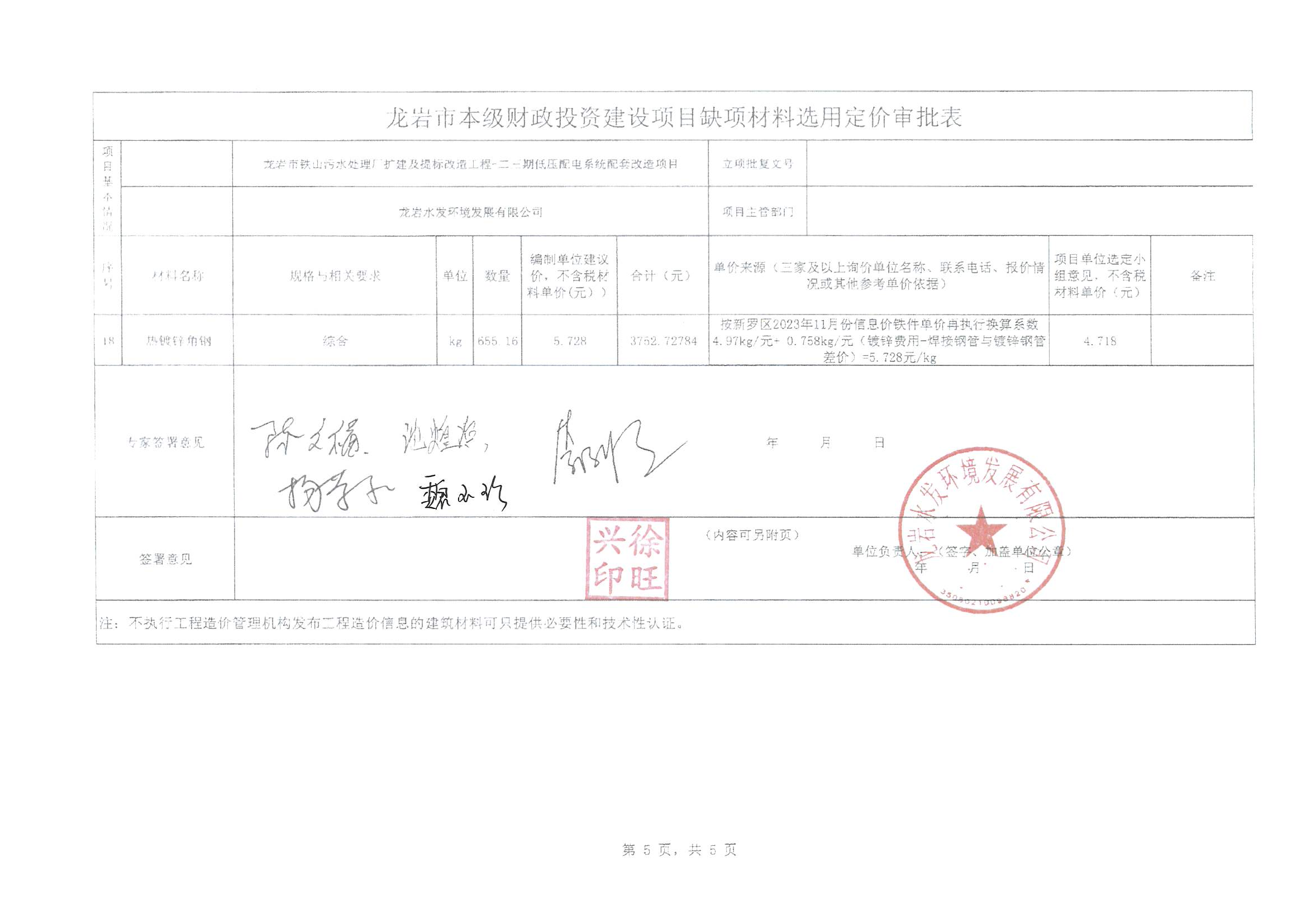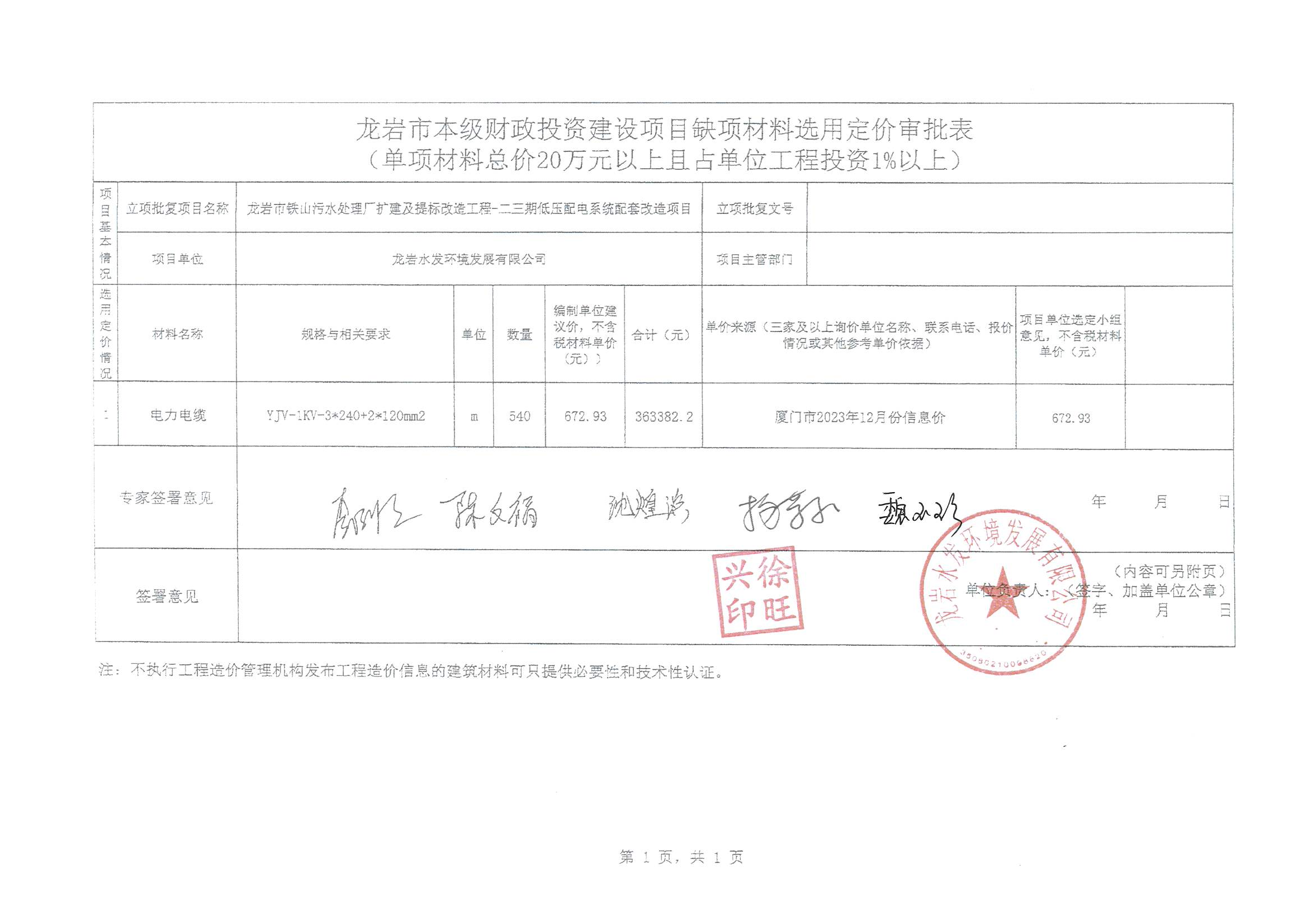 各有關(guān)單位如對(duì)上述缺項(xiàng)材料定價(jià)論證意見有異議,可于2024年1月7日前將書面文件提交至龍巖水發(fā)環(huán)境發(fā)展有限公司。(聯(lián)系人:邱建華 電話:18950839354)