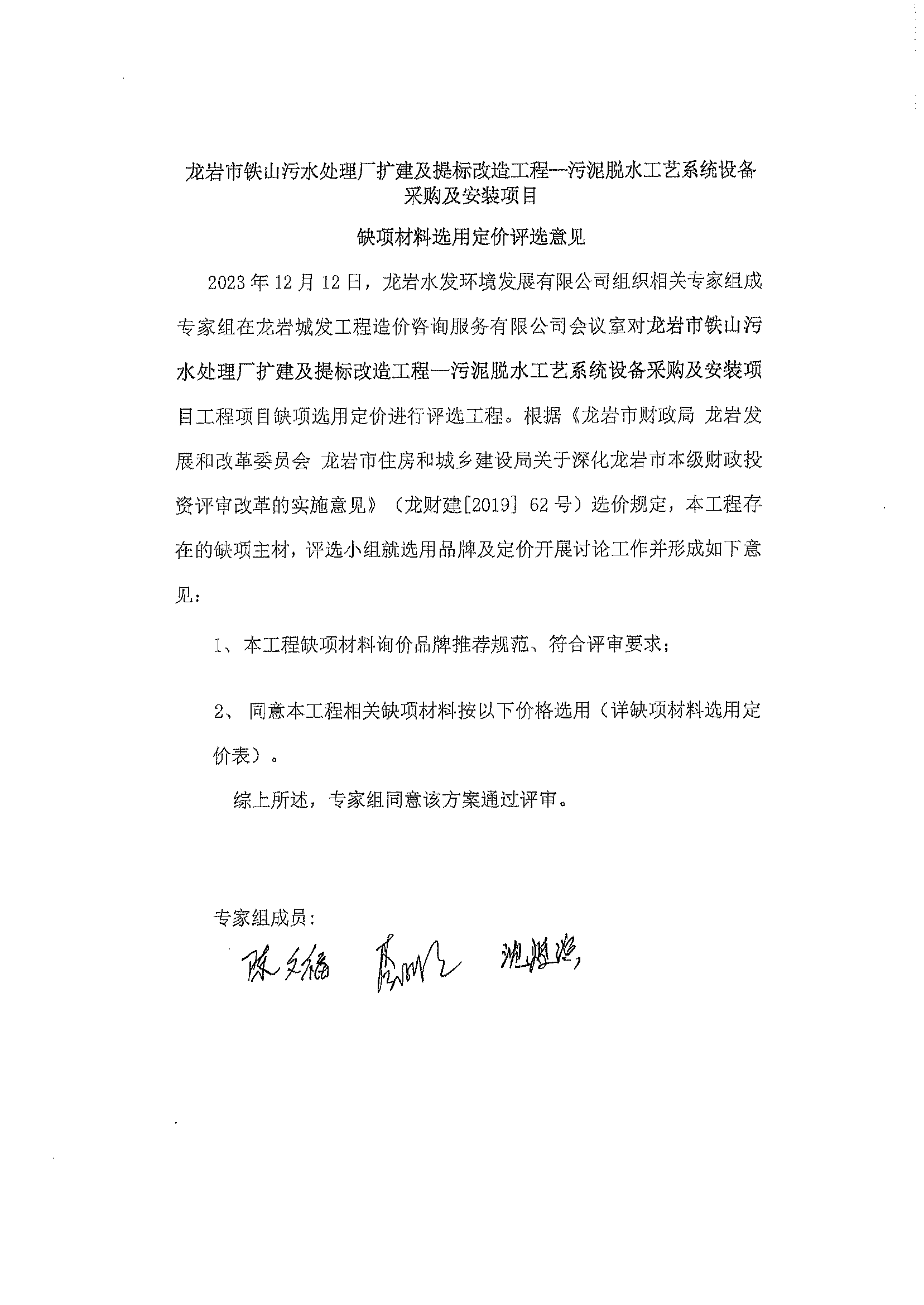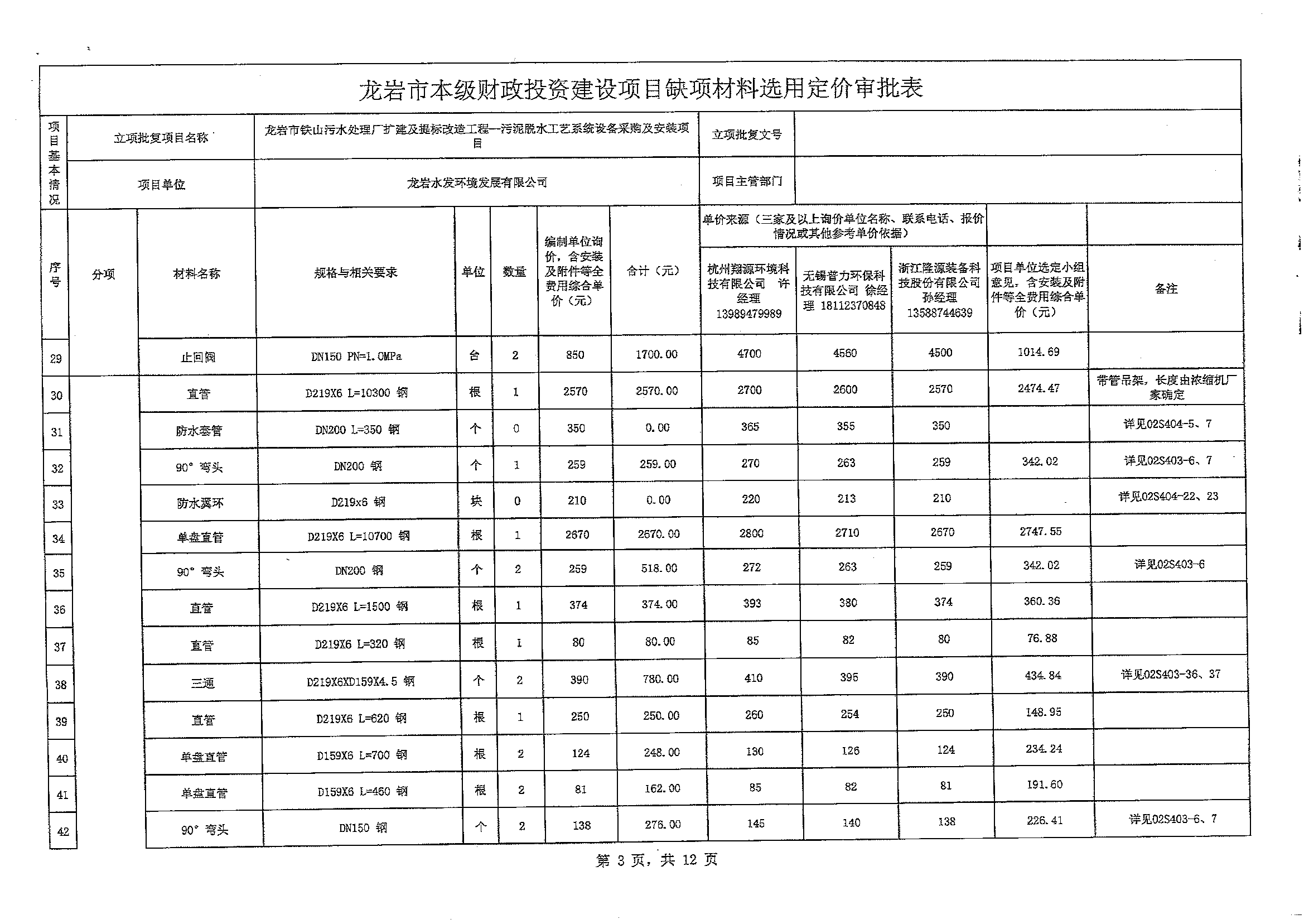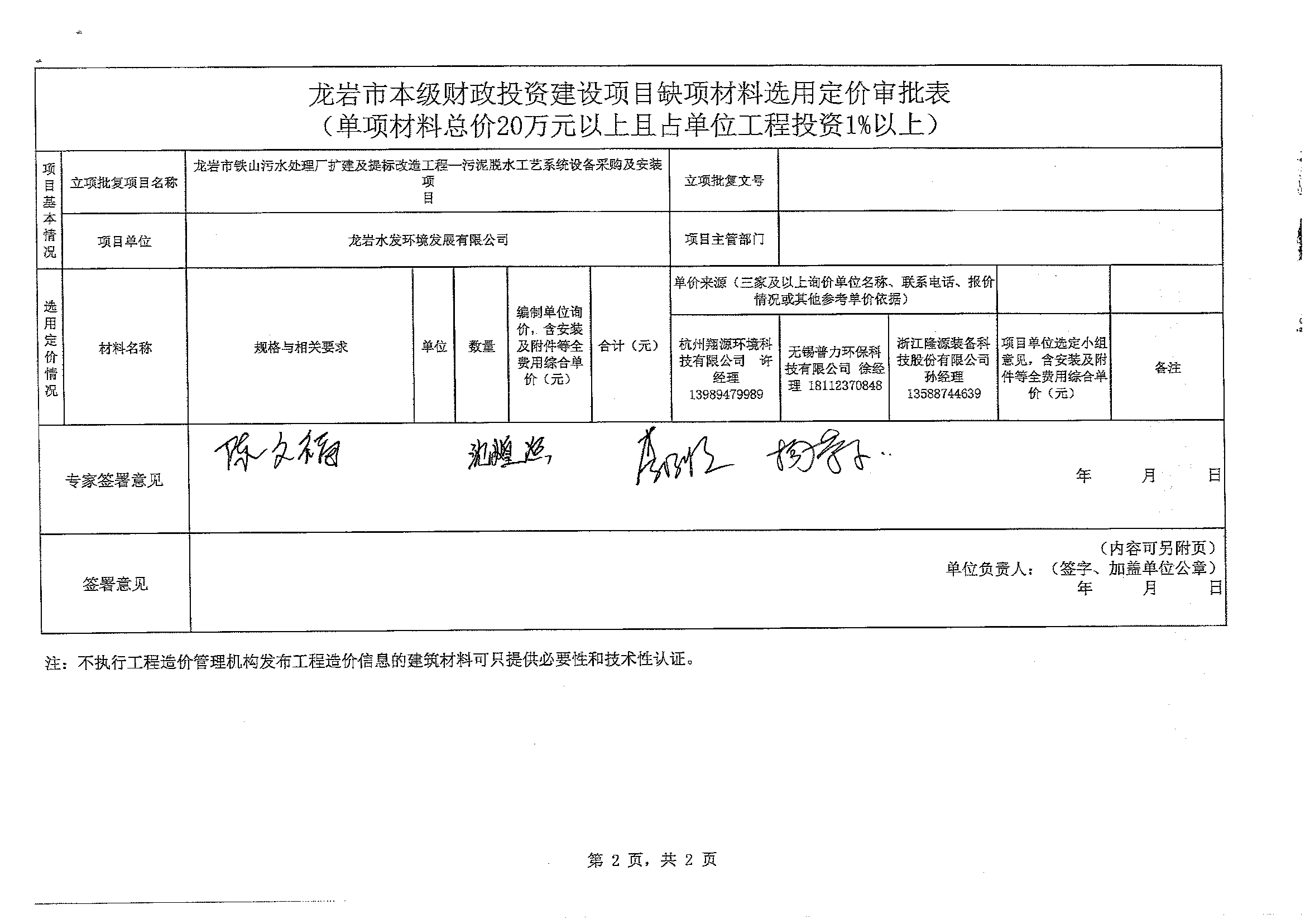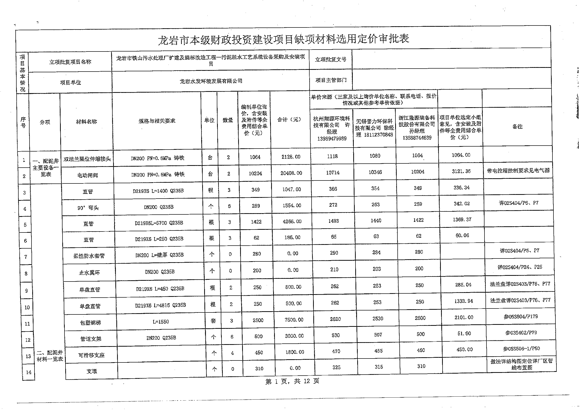 各有關(guān)單位如對上述缺項材料定價論證意見有異議,可于2023年12月22日前將書面文件提交至龍巖水發(fā)環(huán)境發(fā)展有限公司。(聯(lián)系人:邱建華 電話:18950839354)