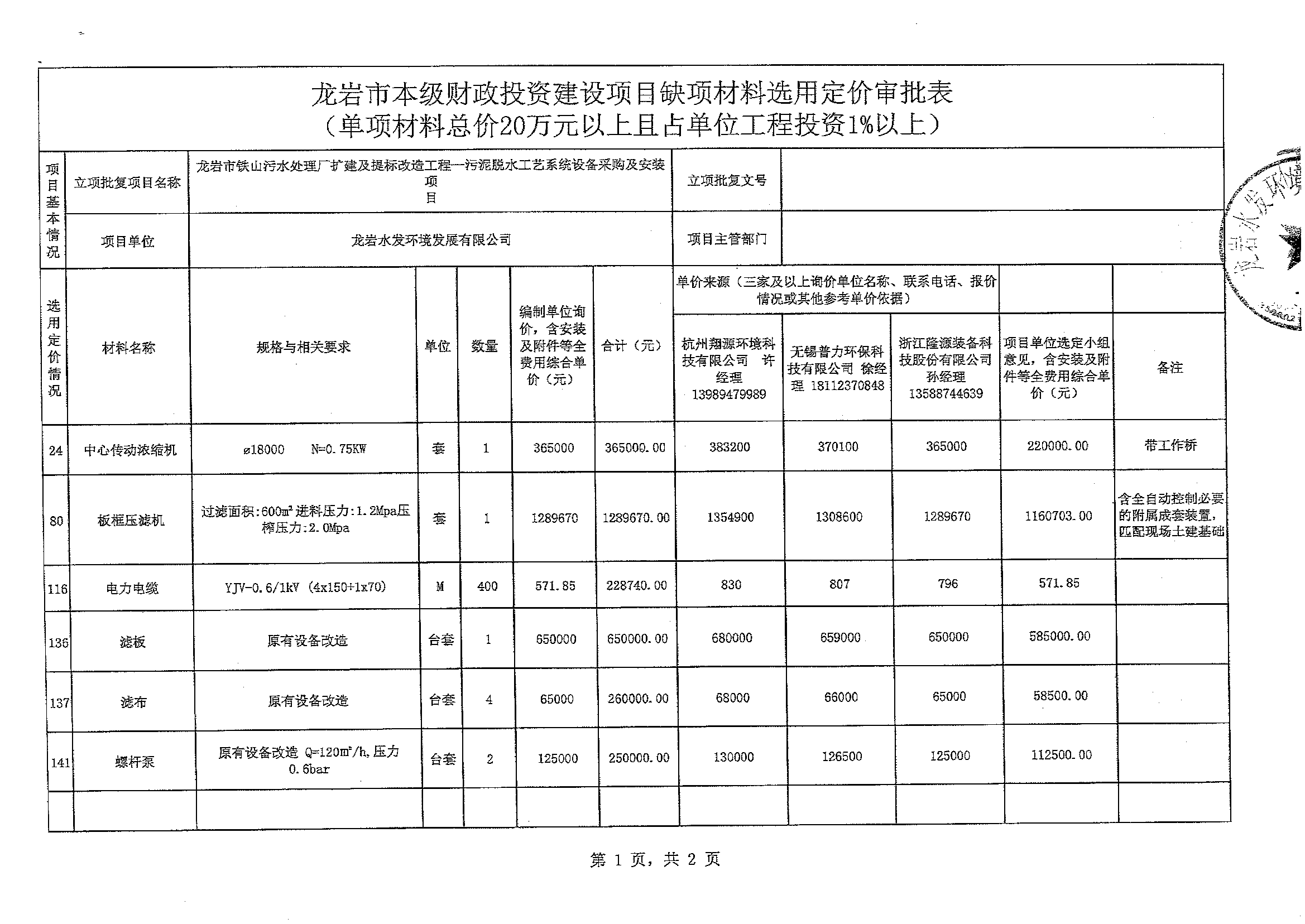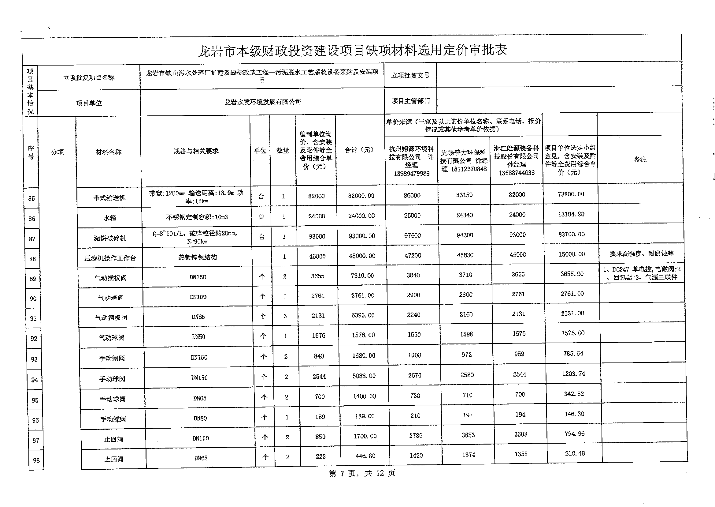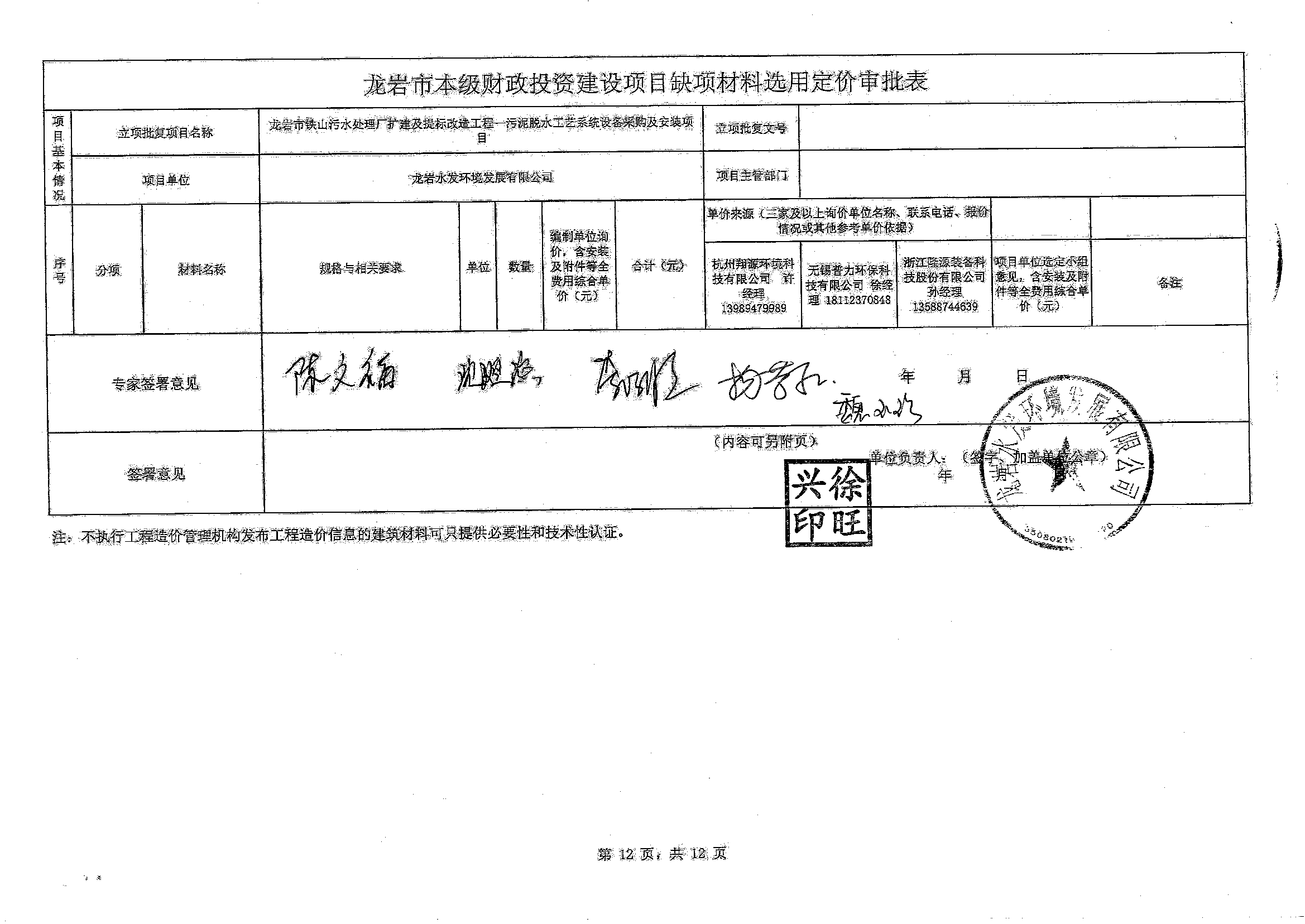 各有關(guān)單位如對上述缺項材料定價論證意見有異議,可于2023年12月22日前將書面文件提交至龍巖水發(fā)環(huán)境發(fā)展有限公司。(聯(lián)系人:邱建華 電話:18950839354)