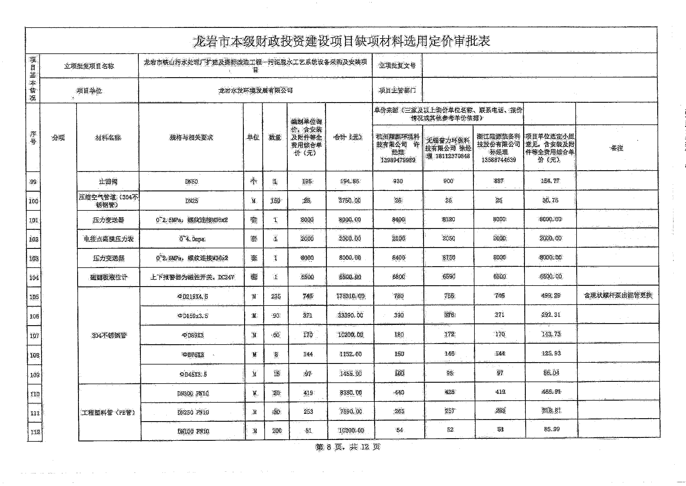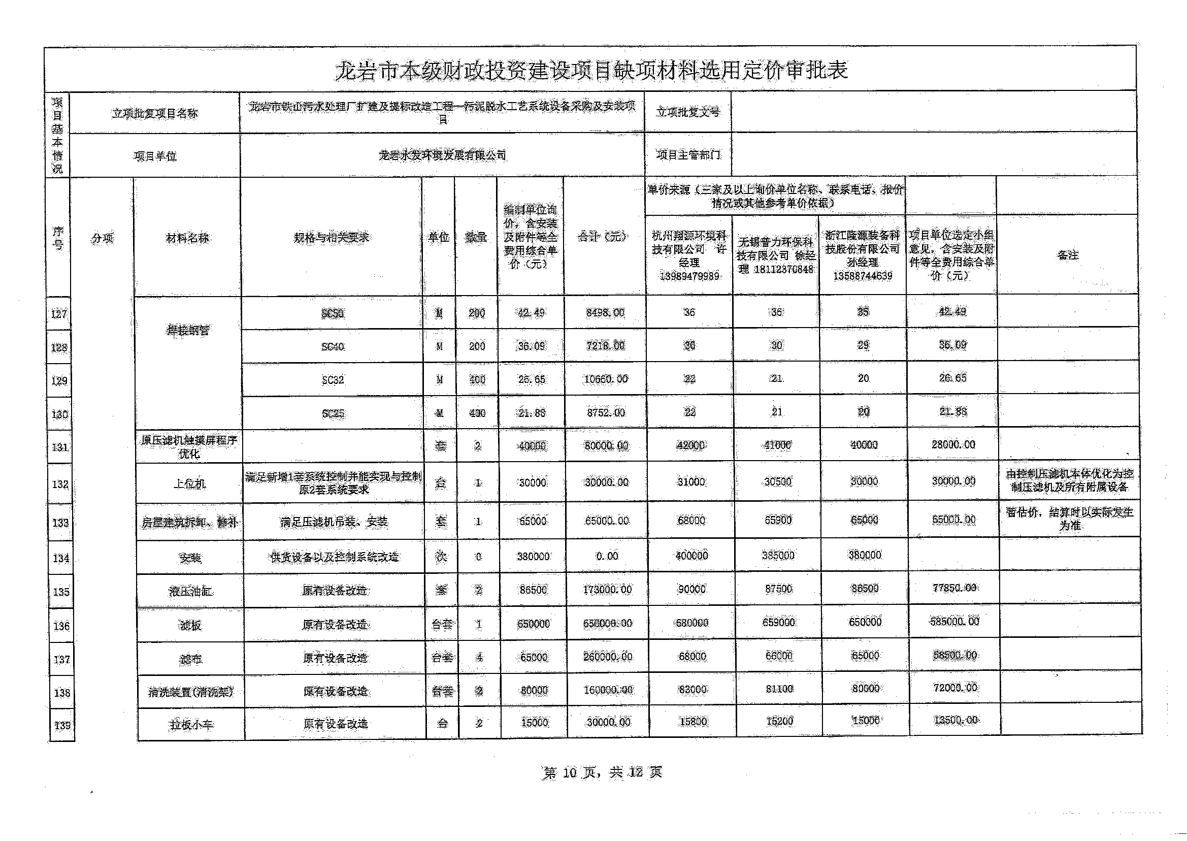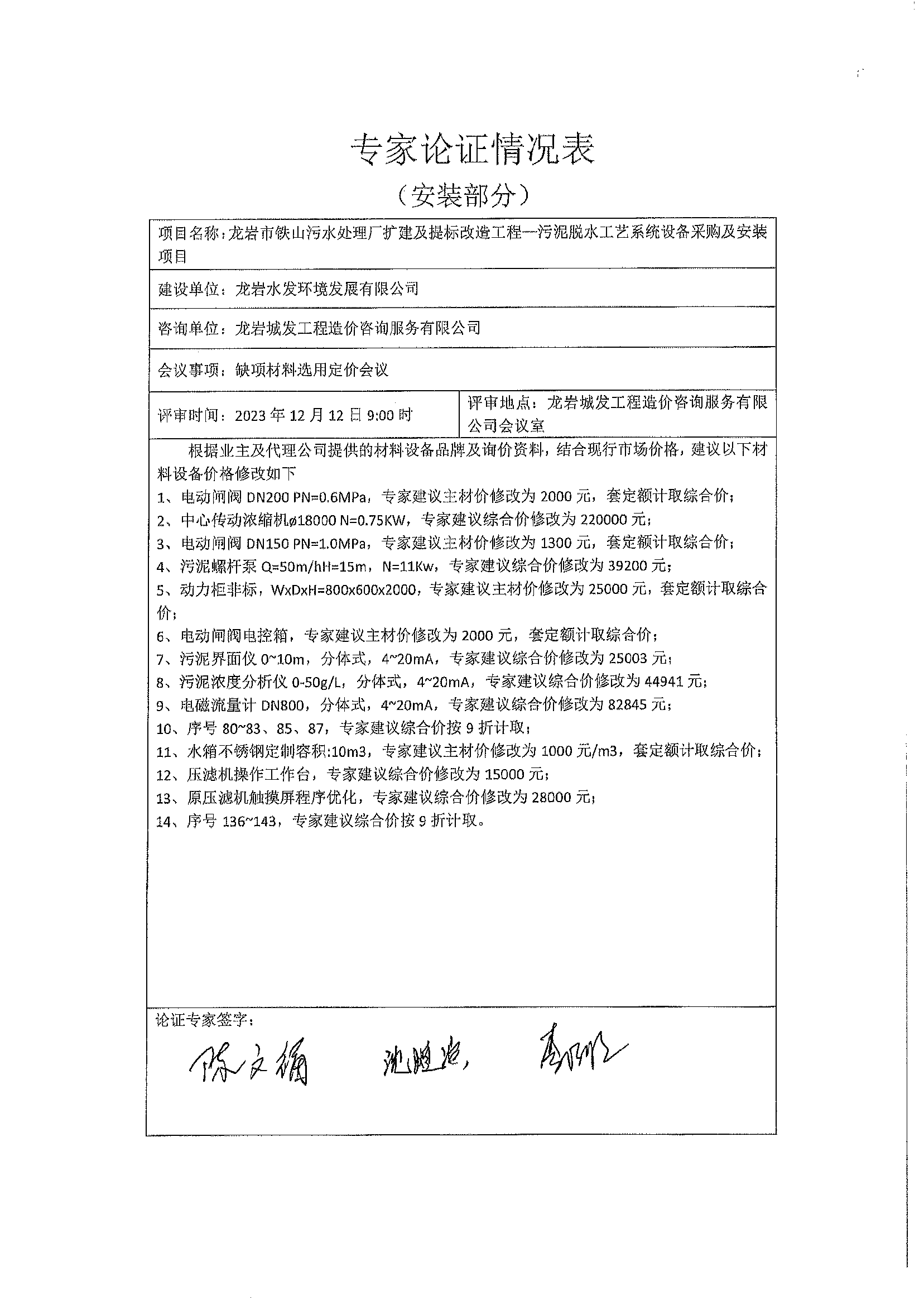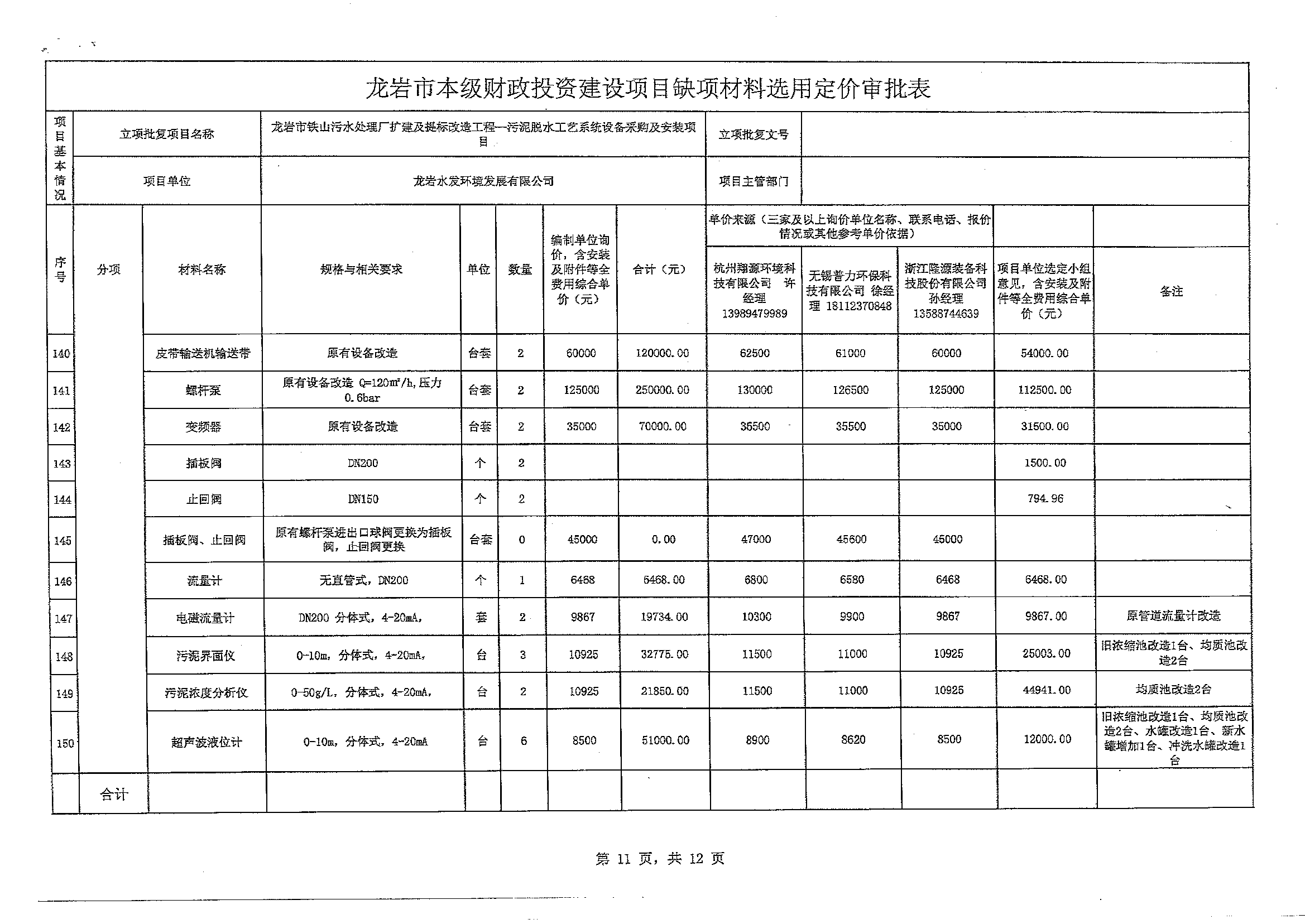 各有關(guān)單位如對上述缺項材料定價論證意見有異議,可于2023年12月22日前將書面文件提交至龍巖水發(fā)環(huán)境發(fā)展有限公司。(聯(lián)系人:邱建華 電話:18950839354)